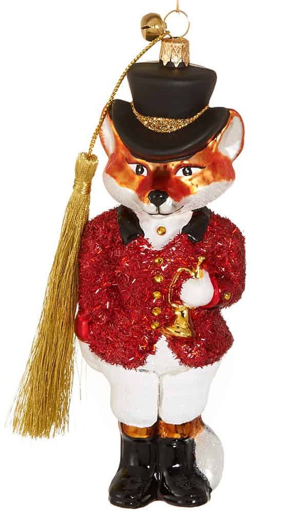 Mouth Blown, Hand Painted and Glittered in Poland Sterling Silver Lined Hunting Fox Christmas Ornament 6″ Tall