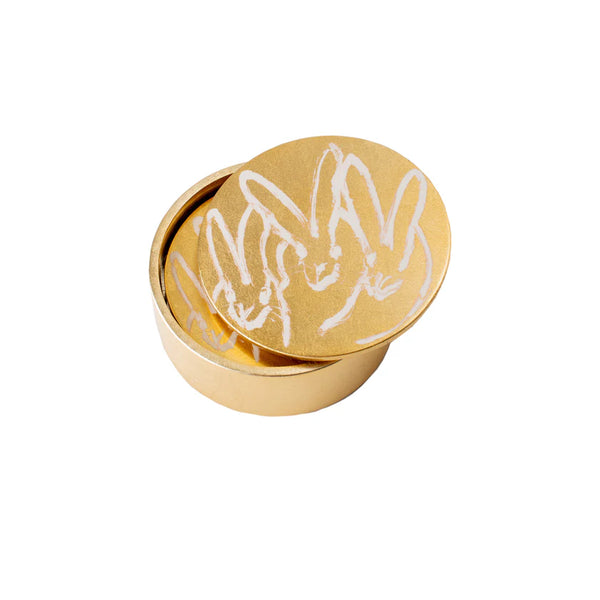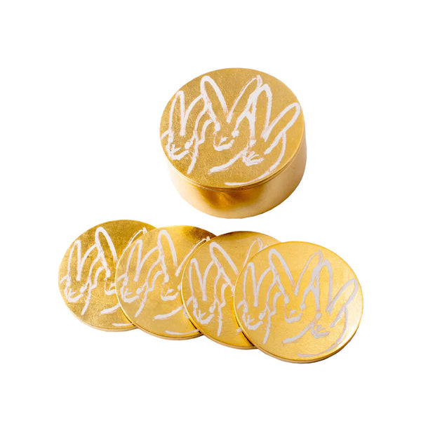 Hunt Slonem Gold Leaf Bunny Coaster Set