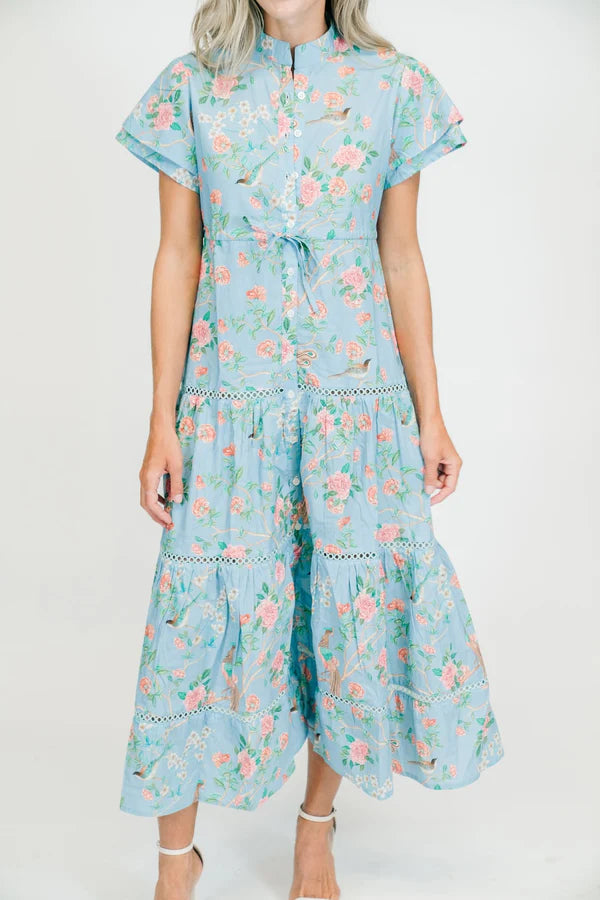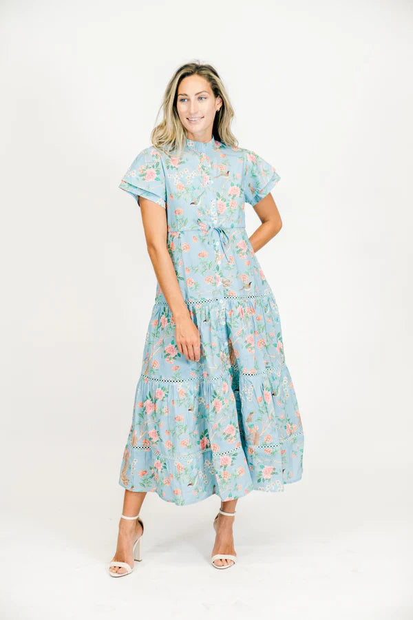 The Hurley features a drawstring waist, tiered skirt, and a functional button front. The double flutter sleeves are the perfect accent to this wardrobe staple. Made in Jaipur, India 100%...