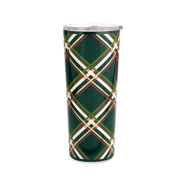 sip your hot or cold drink on the go in kate spade new york's spruce plaid stainless steel tumbler.