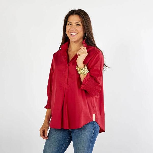Our Kimberly top is a great fitting and “chic” style to wear all the time. Color tab on sides. Longer in back. One Size fits most, fits 4-12. Cotton/Nylon/Spandex blend