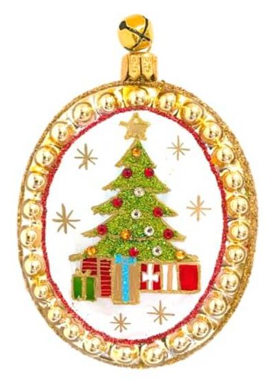 Mouth Blown, Hand Painted and Glittered in Poland Sterling Silver Lined Mouth Blown Glass Christmas Tree Medallion Ornament Limited Edition Hand Painted Retro Christmas Tree and Presents Medallion Ornament Alternate...