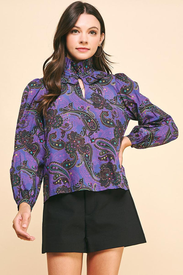 Paisley Print Woven Blouse- Purple Multi