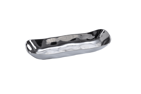 Bread Tray from Pampa Bay. Made of Porcelain and is silver in color. Dishwasher and food safe.