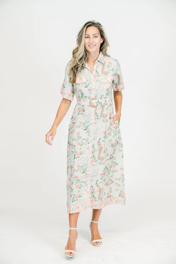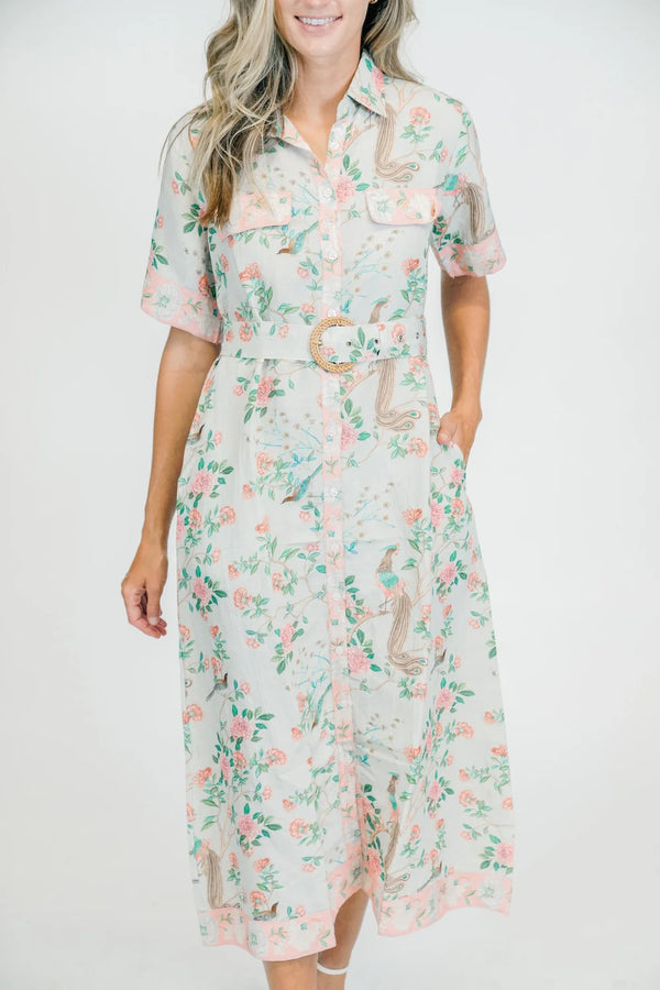 The Penelope is a must-have for your warm weather wardrobe. Featuring a button-down front and cuffed short sleeves, perfect for warm weather days. The detachable belt allows for versatility and...